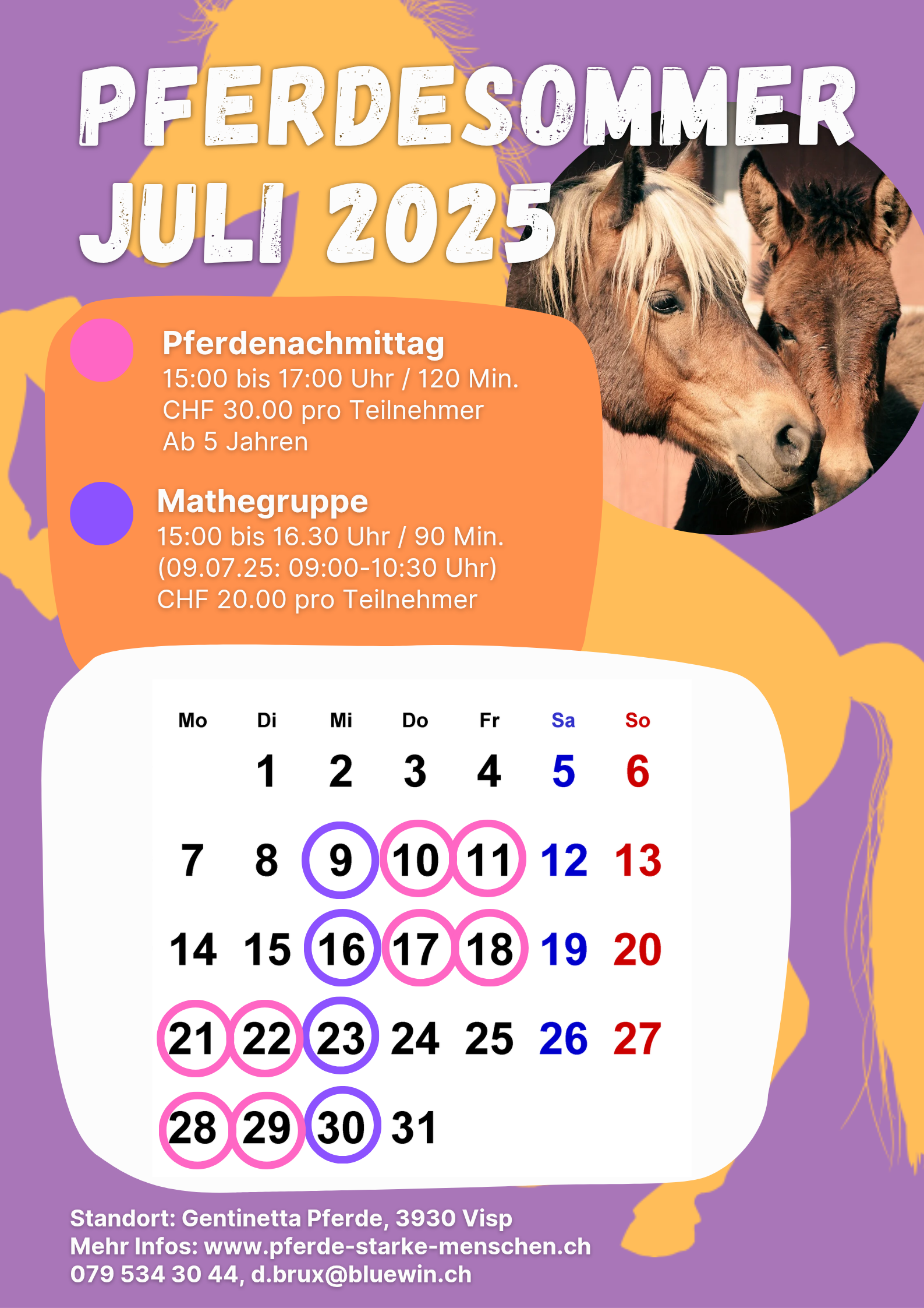 | Pferdenachmittag / 120' | CHF 30.00 pro Kind |
